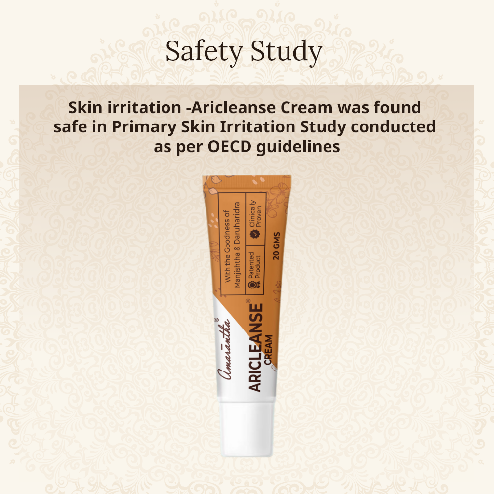 - Skin irritation -Aricleanse Cream was found safe in Primary Skin Irritation Study conducted as per OECD guidelines